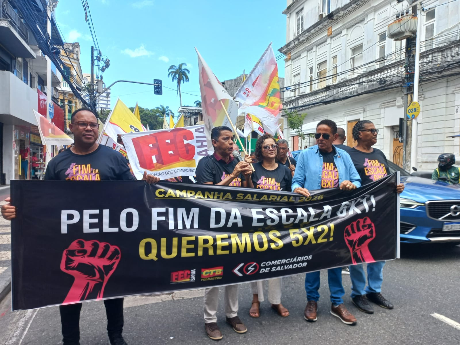 Principal avenida da capital baiana e palco das grandes lutas populares, a Avenida Sete presenciou o lançamento da Campana Salarial 2026 do Sindicato dos Comerciários de Salvador.