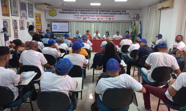Em seminário, SINTRACOM e FETRACOM planejam campanha salarial Reunião da FETRACOM-BASE e seminário conjunto com o SINTRACOM-BA e outros sindicatos do interior marcaram o planejamento da campanha salarial na construção civil, nesta sexta e sábado (7 e 8), em Salvador. Com o tema "Lutar pra avanç... Geral 09/11/2025 Continue Lendo