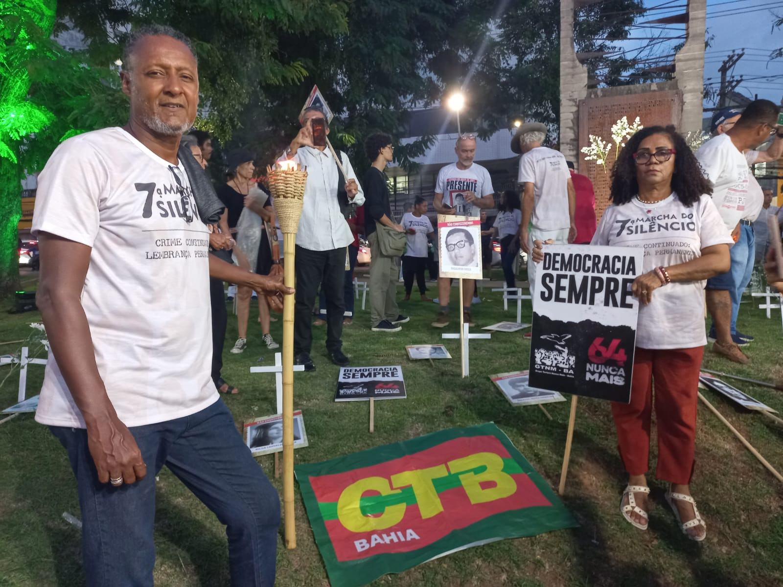 "O sindicalismo tem muita relação com esse movimento, pois teve vários dirigentes perseguidos e torturados, como o meu pai Washington de Souza, que resistiu e ajudou a fortalecer as lutas sindicais na Bahia, a partir da sua atuação na construção civil", lembrou Rosa. Rui Oliveira reforçou a importância da marcha. "É um ato de memória, resistência e compromisso com a democracia. A APLB entende que defender a educação pública também é defender a verdade, a justiça e o direito de não esquecer", completou Rui.