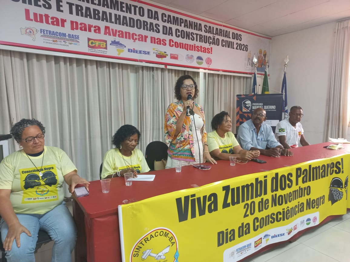 Jerônimo Silva Junior destacou a luta histórica do povo negro, especialmente na Bahia, contra a escravidão. "Nossa luta é permanente contra o racismo estrutural e institucional que persistem nos dias atuais. Essa trajetória de resistência e ação garantiu que os governos de Lula implementassem políticas públicas de inclusão e reparação. Mas, temos muito a conquistar ainda. Precisamos de sindicatos fortes como o SINTRACOM, para reforçar as ações antirracistas e mudar essa realidade", afirmou o sindicalista, também historiador.