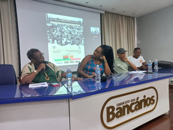 Como parte das atividades do Novembro Negro da CTB Bahia, a Central e a UNEGRO (União de Negros e Negras pela Igualdade) realizaram o seminário "Da 1° Marcha Zumbi dos Palmares à PEC 27: 30 anos de busca por justiça e reparação". O encontro foi realizado nesta quarta-feira (19), de forma híbrida - presencial no Sindicato dos Bancários e pela plataforma ZOOM.
