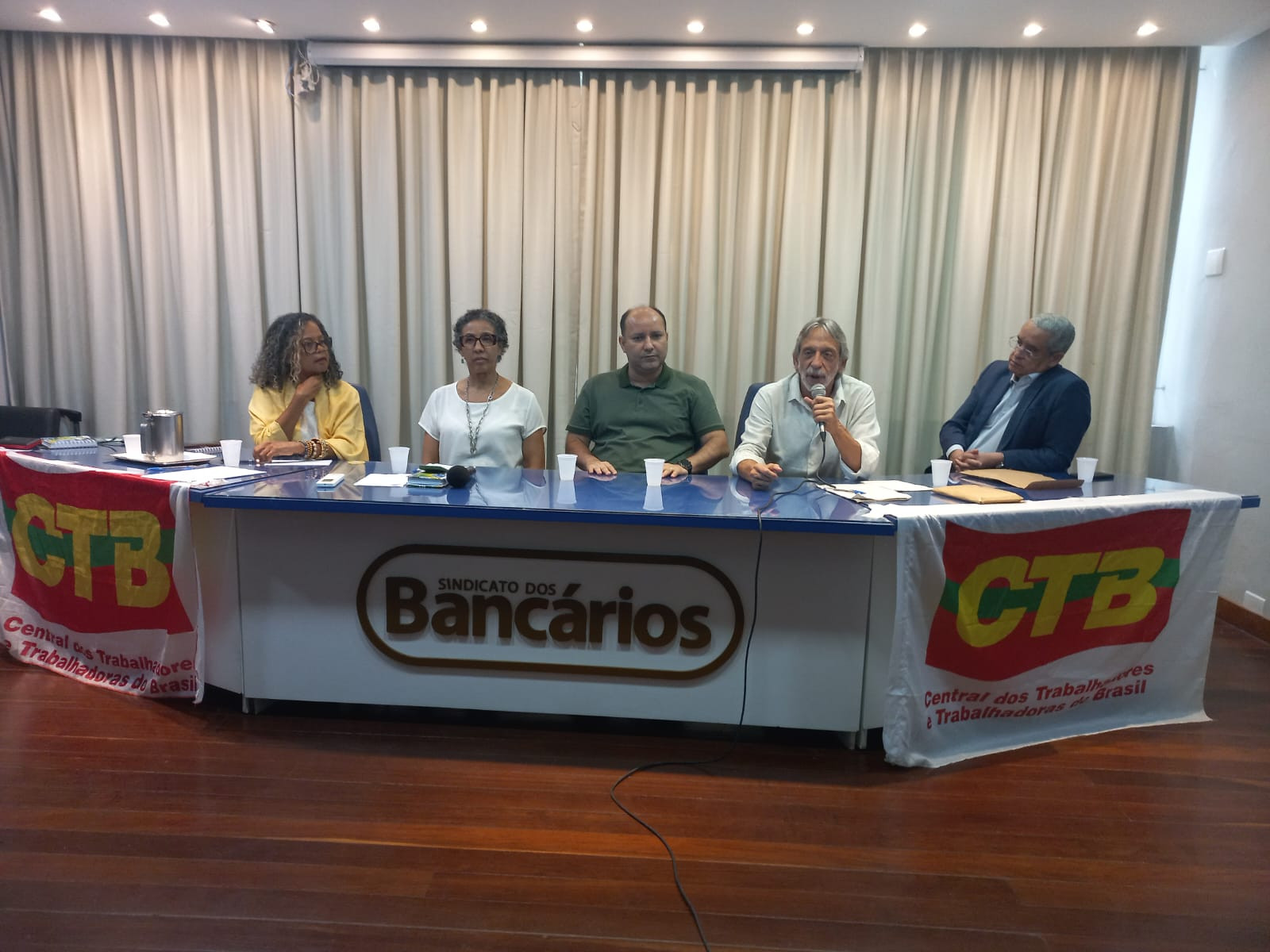 Para debater a situação atual da Previdência Social, o Sindicato dos Bancários realizou, nesta segunda-feira (26), o seminário “Para onde caminha o direito previdenciário?”. Mediado pela diretora do Departamento de AposentAção, Patrícia Ramos, o evento na sede da entidade, em Salvador, teve a presença do secretário do Trabalho da Bahia, Augusto Vasconcelos; do presidente interino da CTB Nacional, Ronaldo Leite; e da presidenta da CTB Bahia, Rosa de Souza.
